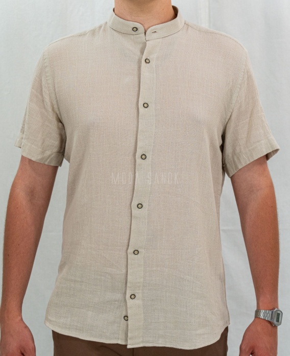 Bawełniana Koszula Męska ciemny beż z krótkim rękawem w kroju slim fit ESPADA MEN'S WEAR - MODA SANOK