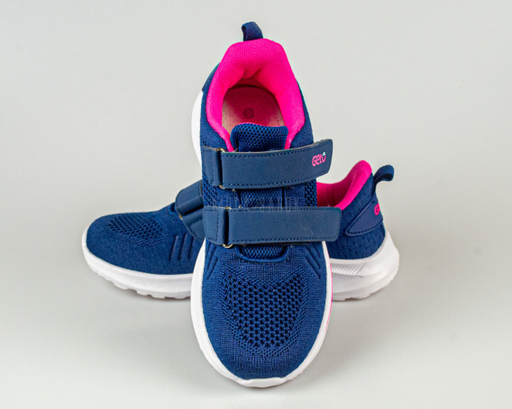 Buty sportowe dziewczęce granatowe z różowymi dodatkami zapinane na rzepy - MODA SANOK