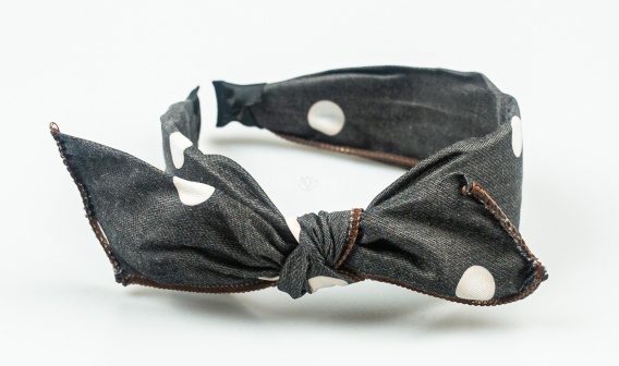 Ciemnoszara opaska do włosów z kokardą i białymi grochami - MODA SANOK