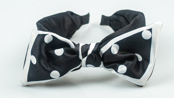Czarna opaska do włosów z kokardą i białymi grochami - MODA SANOK