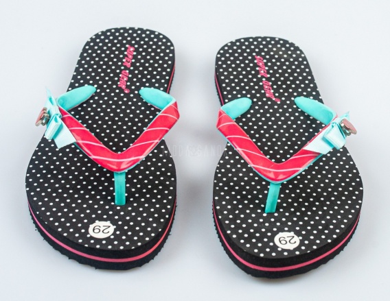 Kolorowe japonki dziewczęce w modny groszkowy wzór z dekoracyjną kokardką na pasku to świetny wybór na letnie dni. Miękka i elastyczna piankowa podeszwa dba o komfort stóp, nawet przy dłuższym użytkowaniu. Kontrastowe kolory – intensywny czarny i różowy – nadają japonkom radosnego charakteru. Idealne do noszenia na plażę, do ogrodu, na plac zabaw lub wakacyjne spacery. Spodobają się każdej małej fashionistce!