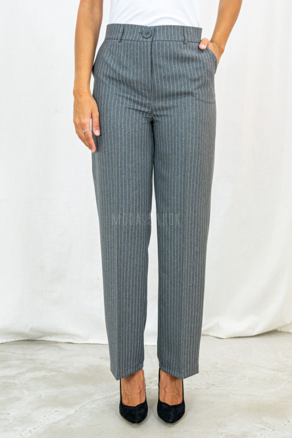 Damskie eleganckie spodnie w odcieniu jasnej szarości z prążkiem BB - MODA SANOK