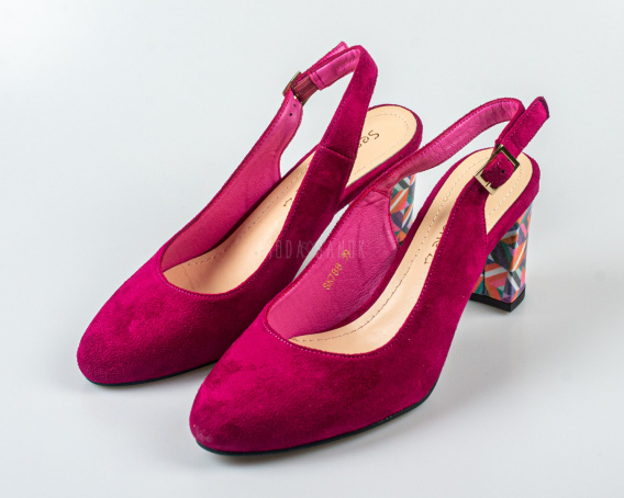 Damskie fuksjowe  zamszowe czółenka na kolorowym słupkowym obcasie z odkrytą piętą  Sergio  Leone - MODA SANOK