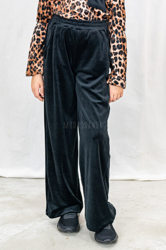 Dziewczęce spodnie welurowe w kolorze czarnym z prostą szeroką nogawką - MODA SANOK