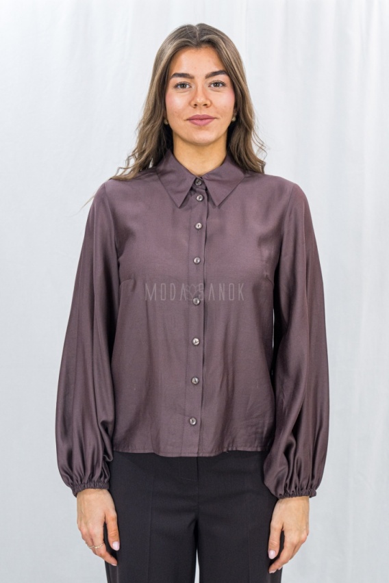 Elegancka koszula damska z długim rękawem w kolorze brązowym -Moda Sanok