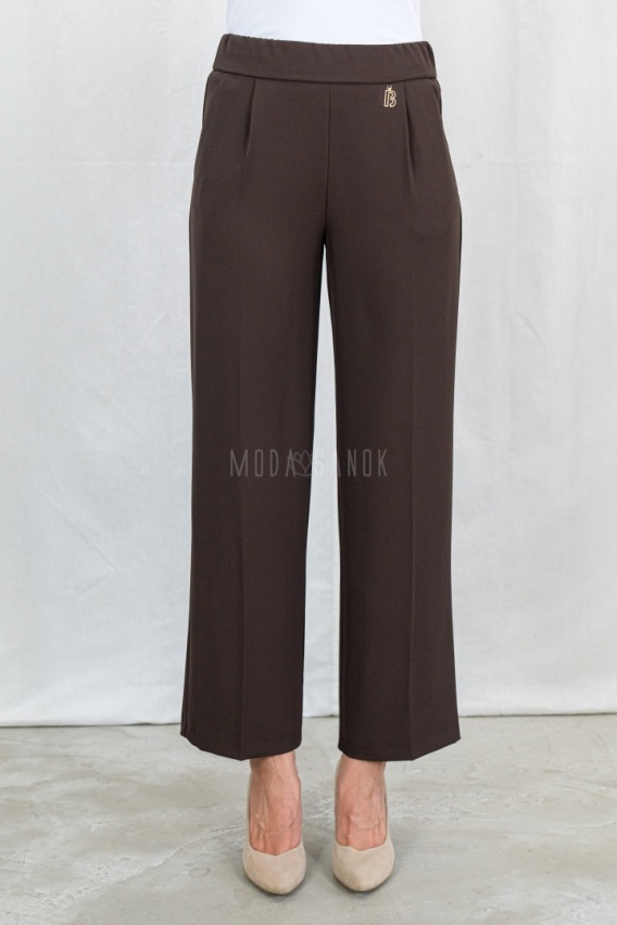Eleganckie brązowe spodnie damskie BARTON proste lejące w kant z gumą w pasie - MODA SANOK