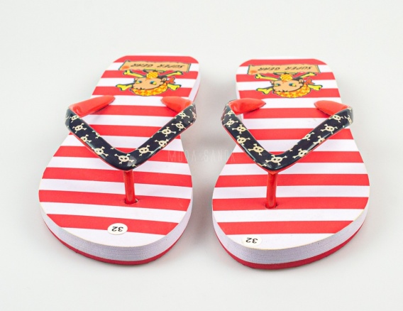 • Japonki dziecięce z pirackim wzorem w czerwono-białe paski SUPER GEAR - MODA SANOK