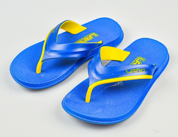 • Klapki japonki chłopięce gumowe niebieskie z żółtym akcentem LANO - MODA SANOK