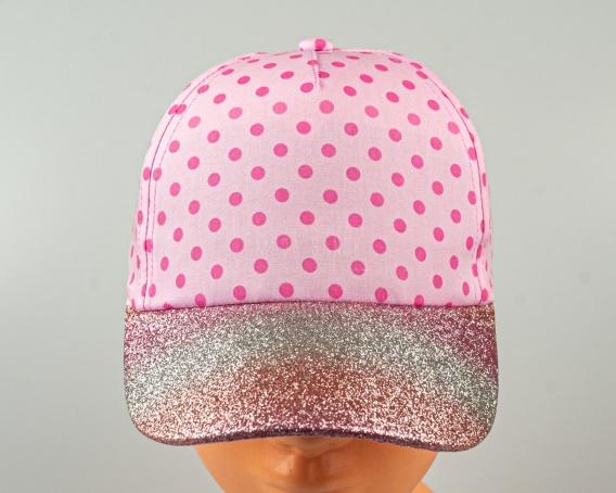 Stylowa różowa czapka z daszkiem dla dziewczynki ozdobiona uroczym wzorem w różowe kropki. Brokatowy daszek dodaje wyjątkowego blasku i modnego akcentu. Wykonana w 100% z miękkiej bawełny, zapewnia komfort noszenia przez cały dzień. Idealna na spacery, wycieczki i jako modny dodatek na co dzień.