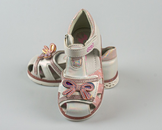 Sandały dla dziewczynki zabudowane srebrno-różowe z kokardką GETO - MODA SANOK