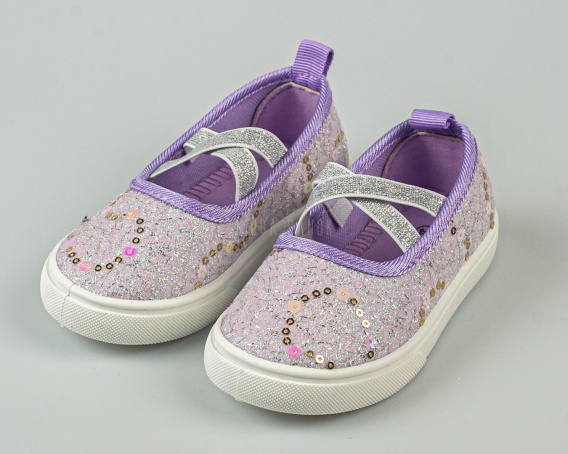 Tenisówki dziecięce jasny fiolet wsuwane z gumeczkami ozdobione cekinkami - MODA SANOK
