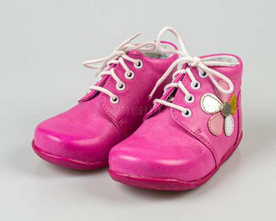 Trzewiki skórzane dla dziewczynki nieocieplane różowe z kwiatkiem na wiązanie KORNECKI - MODA SANOK