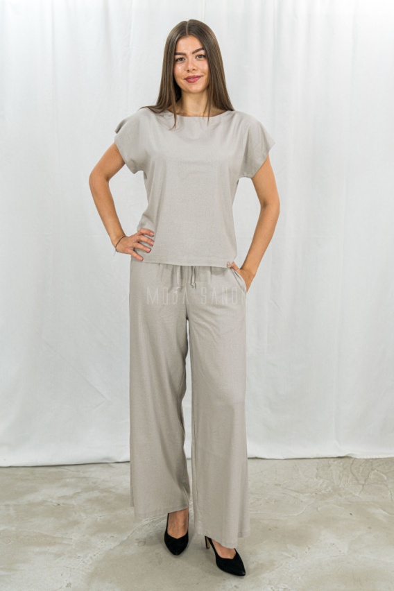 Zestaw damski komplet beżowy bluzka z krótkim rękawem i szerokie lużne spodnie na gumce BARTON - MODA SANOK